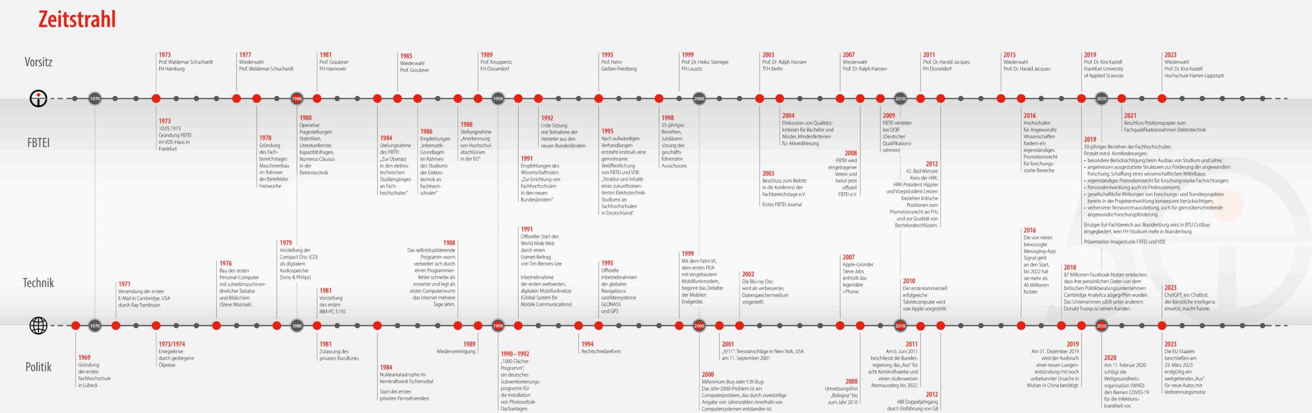 Unsere Chronik zeigt, wie sich der FBTEI, die Technik und die Hochschulpolitik im Laufe der Jahrzehnte gemeinsam weiterentwickelt haben.